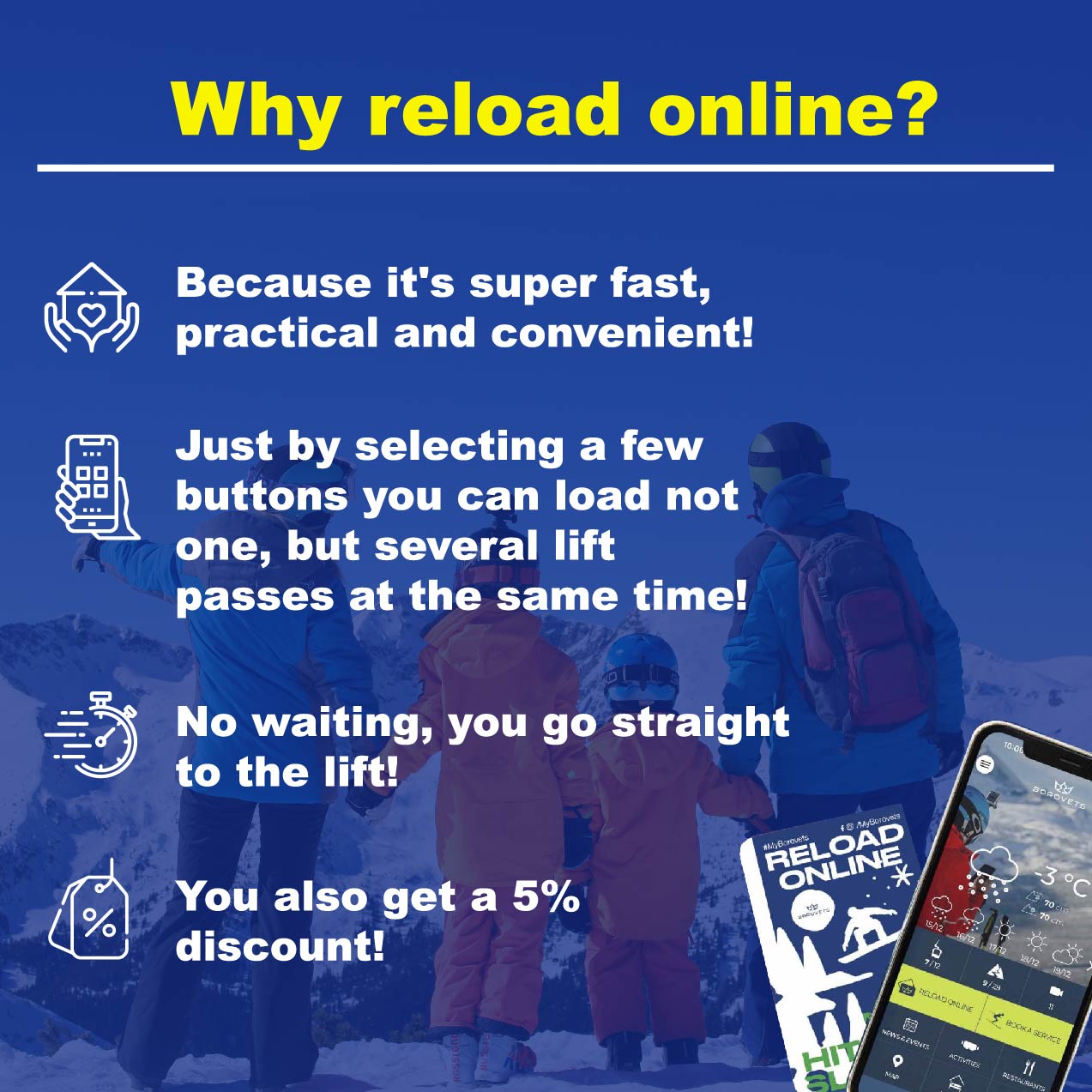 Buy a reloadable card from any cashdesk in Borovets resort and reload with 5% discount